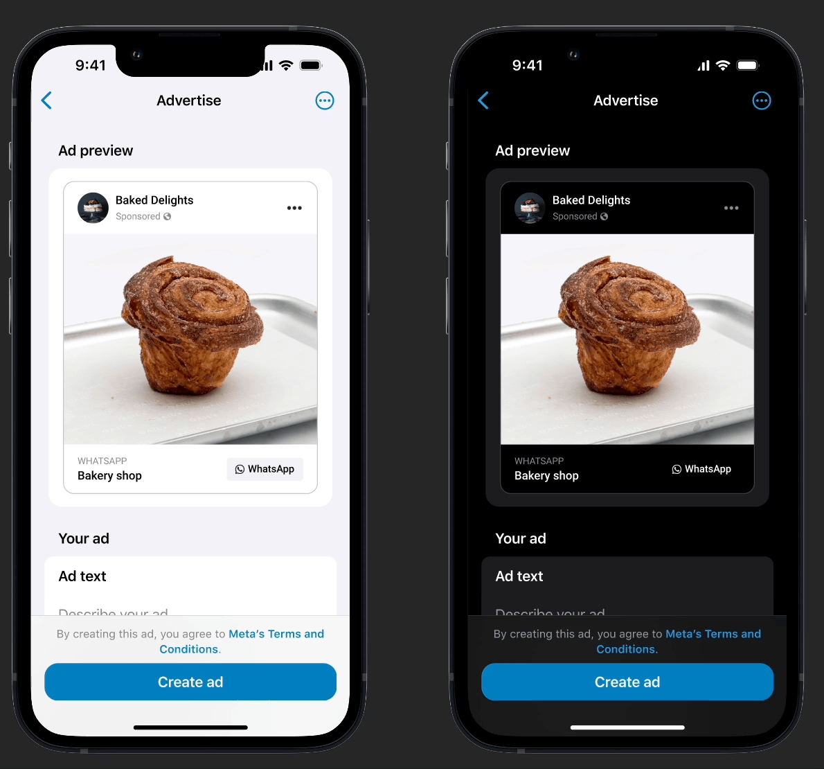 This update gives parity to between iOS and Android, improves the dark mode experience and gives consistency between the organic WhatsApp experience and the business side.