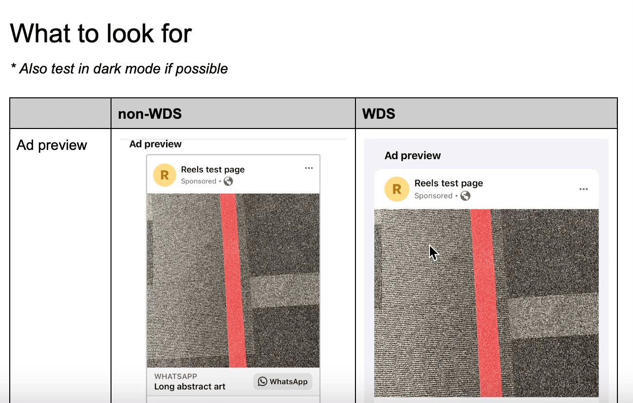 The designs were reviewed by Design system PDs as well as a build review on both the Facebook and WhatsApp side to ensure product, UX and UI quality.